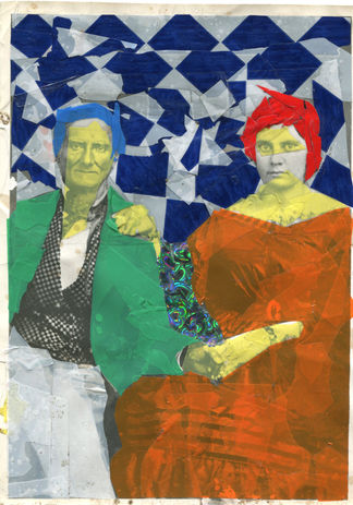 Fotografia blanco y negro intervenida con cinta tape de color. 8.8 cm X 12.6cm 2016